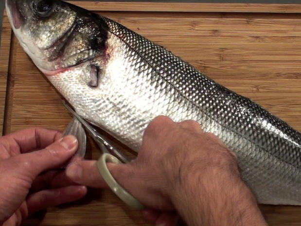 - ♦ Première phase de l’habillage des poissons ; éliminer les nageoires du poisson.