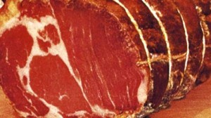 Le Capocollo Calabre (DOP) est un produit de charcuterie de forme cylindrique, fabriqué à partir de la partie supérieure de la longe de porc désossée puis salé à sec ou en saumure, enveloppés dans du boyau naturel et attaché avec de la ficelle naturelle. A la coupe, la couleur est rose vif, avec des stries de graisse de porc. La saveur est délicate et raffinée avec l’âge, et l’odeur est caractéristique et de bonne intensité. La couche de graisse doit être d’environ 3 à 4 millimètres, le salage dure de 4 à 10 jours, il est suivi d’un lavage avec eau et vinaigre. Il est pressé et on ajoute du poivre noir en grains. Le Capocollo est laissé à sécher 100 jours à compter de la salaison.