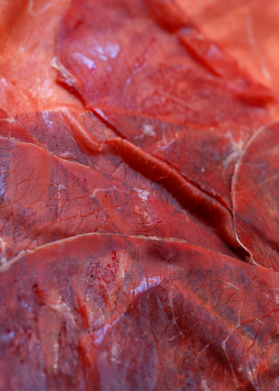 Produit dans les régions Bourgogne et Rhône-Alpes à partir de la race charolaise, le Boeuf de Charolles se caractérise par son » grain particulier, à la surface lisse, douce et soyeuse au toucher et à sa couleur –vif– « .