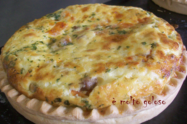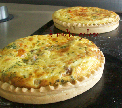 - ◊ Garnir tomate concassée, champignons de Paris, herbes hachées. Couler l’appareil, finir avec les lamelles de Comté.