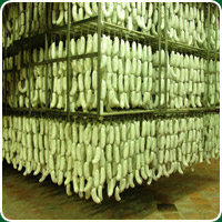 La pâte est alors roulée avec les doigts, préalablement enduits d’huile d’amande douce, afin d’obtenir les bâtonnets translucides prêts à être emballés.