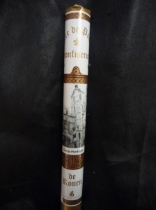 En 1865, on lui a donné la forme d’un bâtonnet d’une dizaine de centimètres représentant le Gros Horloge de Rouen et il est vendu dans un emballage gris, blanc et or.