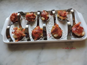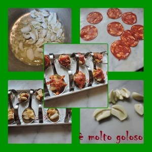 - ◊ Couper 8 fines tranches de chorizo doux.