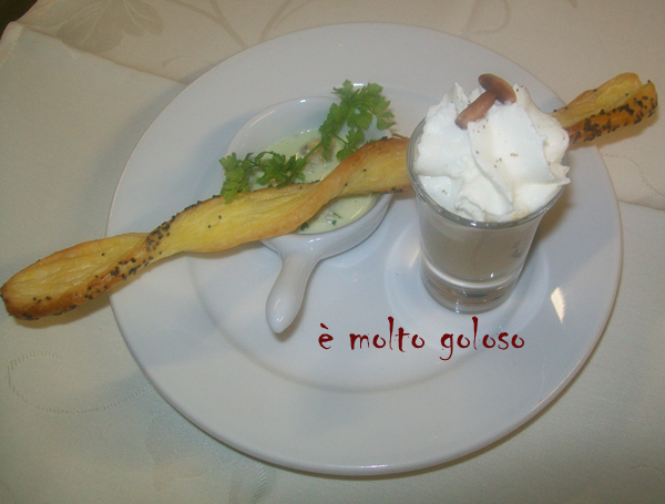- Dresser la crème de cèpes en verrines sur 1 lardon fumé. Finir avec le siphon au lard fumé. Décorer pignons de pin torréfiés et 1 girolle sautée.