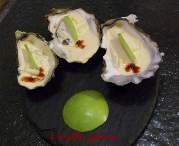 - ♦ Décorer chaque huître avec 1 morceau de pomme verte et une pointe de paprika.