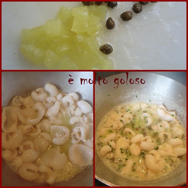 - • Ajouter les câpres et les dés de chinotto di Savona. Enrober. Assaisonner.