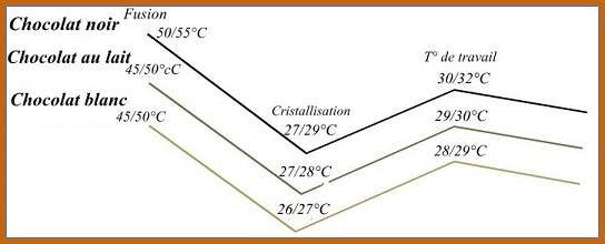 Cristalliser : Passage le l’état solide à l’état liquide du chocolat pour lui donner une brillance homogène, du croquant et du caractère lors de la dégustation. La cristallisation est la dernière étape du tempérage du chocolat.
