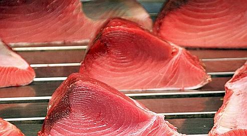 - * Fariner légèrement 6 tranches de thon rouge bien assaisonné.