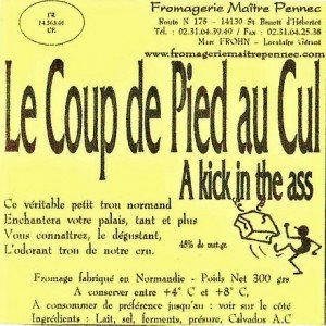 Le Coup de pied au cul ou A kick in the ass est un fromage né en 1951 en Basse-Normandie (Calvados).