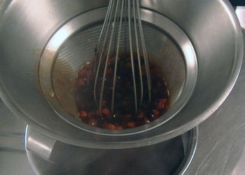 Chinoiser : Passer un fond, une sauce, une crème, une préparation liquide ou semi liquide au chinois ou chinois étamine.