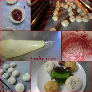 - ◊ Réaliser une pâte à choux : bouillir 250 grammes d’eau, sel, beurre 70 grammes. Ajouter 125 grammes de farine et dessécher sur le feu. Incorporer 3 à 4 oeufs. Dresser 40 petits choux, dorer et parsemer de graines de sésame blanc. Cuire à + 190°C.