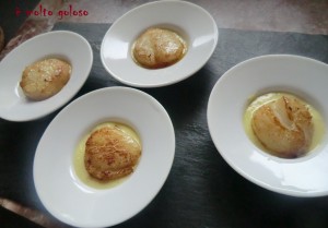 - Sauter les noix de Saint-Jacques au beurre demi sel (chair nacrée faces dorées). Eponger sur papier absorbant.