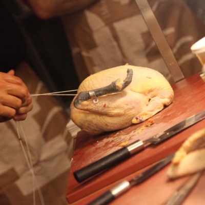 Brider : Assujettir à l’aide d’une ficelle à rôti et d’une aiguille à brider les membres d’une volaille, d’un gibier à plumes, crus, pour maintenir les membres serrés contre le corps du volatile pendant la cuisson. Permet de donner une meilleure présentation et de régulariser la cuisson. Une ou deux brides peuvent être utilisées.
