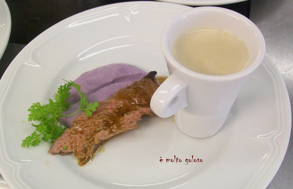 - • Dresser sur assiettes chaudes : l’aligot avec l’agneau et servir la crème de châtaignes en tasses. Décorer cerfeuil.