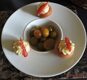 - – Parer et dénerver 2 gros filets de canard, assaisonner sel et piment d’Espelette. Mariner 2 heures avec huile d’olive.