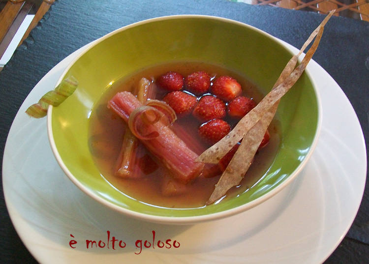 - ◊ Pocher les tronçons de rhubarbe quelques minutes dans le sirop bouillant. Refroidir et réserver au froid.