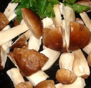 - ♦ Trier, laver rapidement 400 grammes de cèpes, les tailler en morceaux