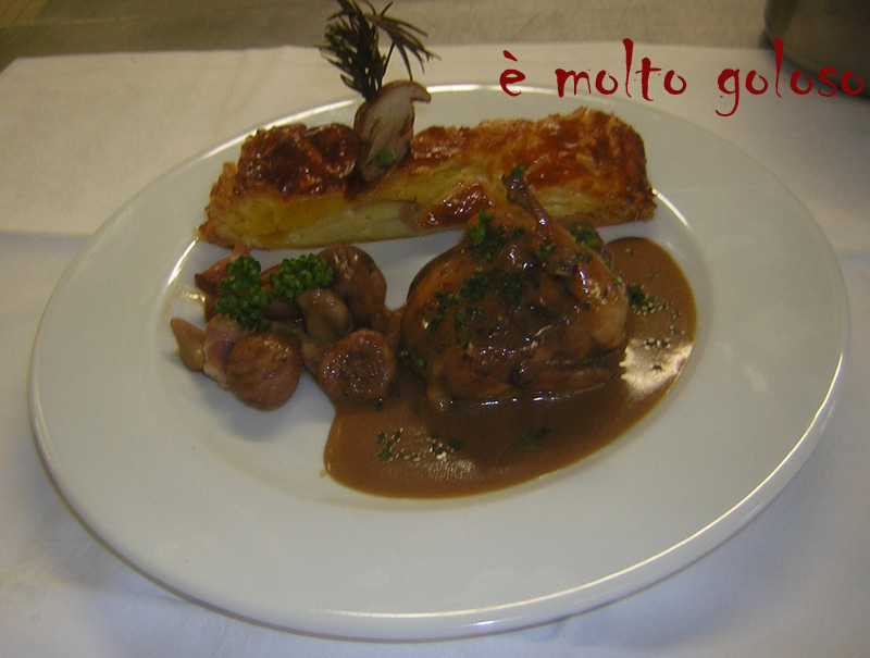 - ♦ Dresser sur assiettes chaudes : riz moulé, cuisse nappée avec sauce, champignons et queues d’écrevisse.