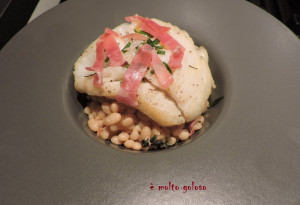 - ♦ Dresser en assiettes creuses chaudes : haricots cocos – julienne de jambon de Bayonne et ciboulette ciselée. Finir avec le cabillaud et un filet d’huile d’olive.