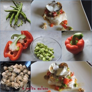 - ◊ Chauffer le poivron, ajouter les fèves et les coques.