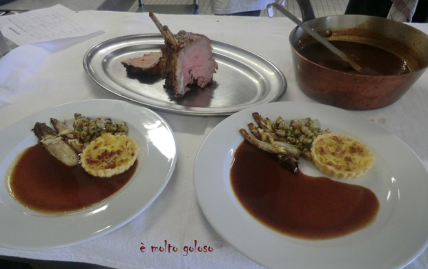 ♦ Mettre le carré en cuisson « Poêler » avec une garniture aromatique (carottes, oignons, ail, bouquet garni et tomate) au four et à couvert. l’arroser en court de cuisson (1 h environ).