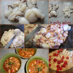 ♦ Farce : Sauter à l’huile d’olive les tentacules, ajouter l’oignon et les poivrons, ajouter la tomate. Hors du feu, ajouter le persil, l’ail, la mie de pain, 3 œufs entiers, sel fin et piment de Cayenne. Incorporer la chair à saucisse (mélange homogène).