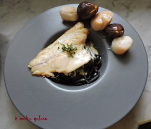 - ◊ Cuire 80 grammes de linguine à l’encre de seiche. Lier huile d’olive et gingembre haché.