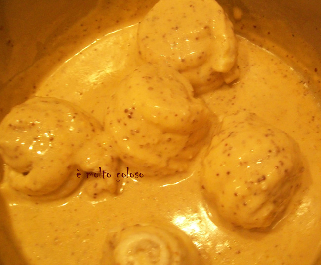 - ¤ Confectionner une sauce vin blanc . Cuisson réduite à glace, crémer et réduire. Monter au beurre et avec une cuillère de moutarde en grains. Vérifier la liaison et l’assaisonnement.