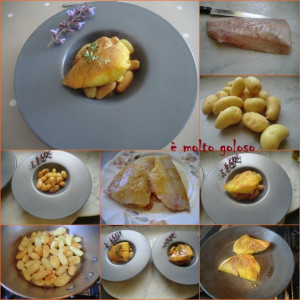- ♦ Dresser en assiettes creuses chaudes : pommes grenailles, lieu noir, napper de sauce partiellement. Finir avec brins de thym frais et fleur de sauge.
