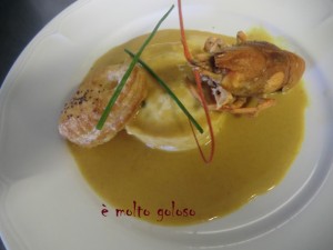 - ♠ Dresser sur assiettes chaudes : mousseline nappée de sauce, fleuron, écrevisse troussée et lustrée, brins de ciboulette.