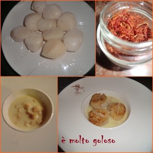 - ♦ Dresser en assiettes creuses chaudes : nage aux gambas, poser 3 noix de Saint-Jacques, pistils de safran sur l’aile de l’assiette.