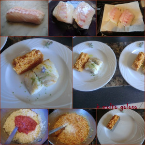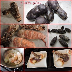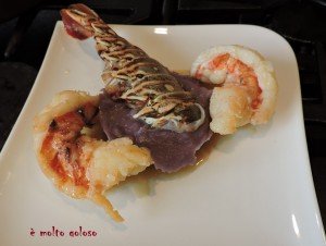 - • Dresser harmonieusement sur assiettes rectangulaires transparentes. Poser une verrine de coulis tiède, une larme de coulis.
