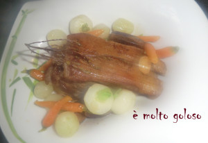 - ♦ Glacer à blanc les carottes, navets et oignons grelots (eau froide, beurre, sel, poivre blanc et pincée de sucre). Réserver.
