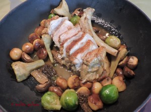 - ♦ Dresser en cocotte : côte tranchée, garniture autour. Finir avec jus de veau.