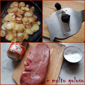 - ◊ Éplucher, laver et émincer 600 grammes de pommes de terre.