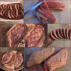 - ◊ Trancher les 2 magrets dans la largeur.