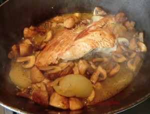 - ◊ Trancher le filet de dinde et ajouter les champignons sautés et égouttés.