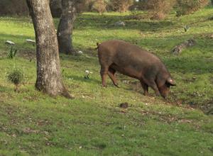 Les jambons de porcs ibériques d’appellation d’origine sont de pure race ou croisés avec des Duroc Jersey (dans la limite de 25% de leur sang. Donc 75% de sang ibérique).