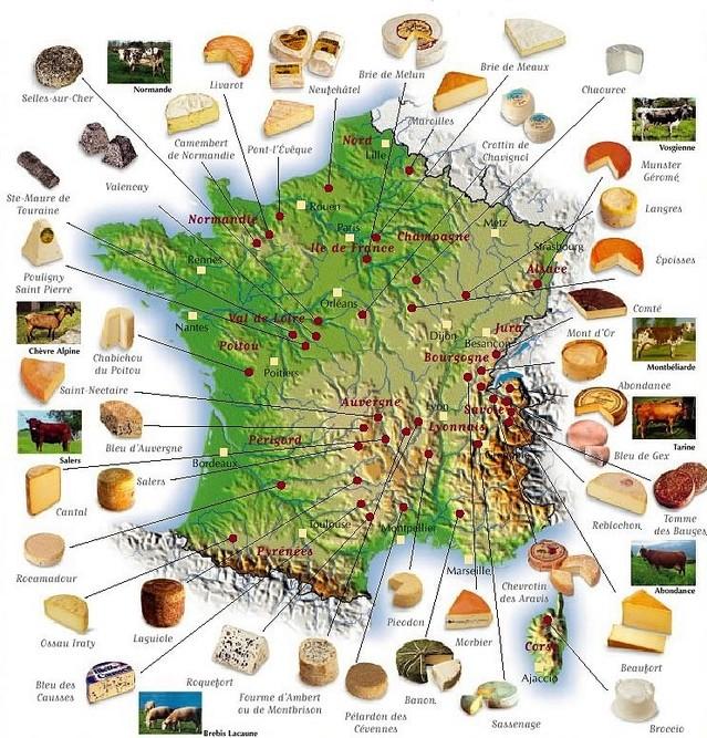 Carte des 46 AOC fromagères Françaises.