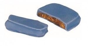 Imaginez la plus fine des nougatines, savante association d’amandes et de noisettes, caramélisées et recouvertes ensuite d’une couche de chocolat bleuté.