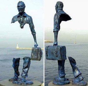 Cette sculpture de Bruno CATALANO (sculpteur marseillais) symbolise le vide créé lorsque l’on se voit obligé d’abandonner son pays, sa vie et les siens…. Peu importe la raison de l’exode !