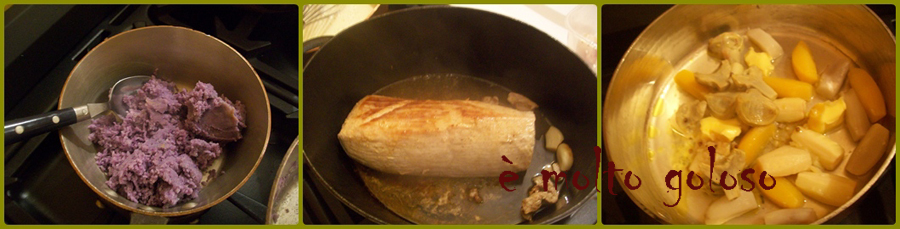 - ◊ Eplucher 200 grammes de topinanbour, 200 grammes de panais et 200 grammes de rutabaga. Les tourner et glacer à blanc (peu d’eau, sel, poivre, sucre et beurre).