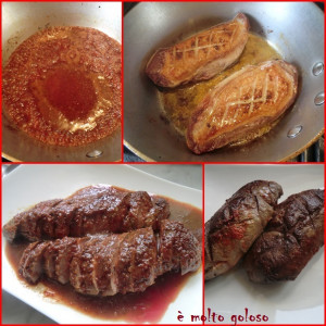 ◊ Trancher les magrets. Lier la sauce avec le sang des magrets sans bouillir.