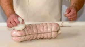 Le ficelage s’effectue à l’aide d’une ficelle de chanvre (sens de la longueur et série d’anneaux transversaux et parallèles, une ficelle de couleur est utilisée comme bride finale pour différencier la soprèssa à l’ail.