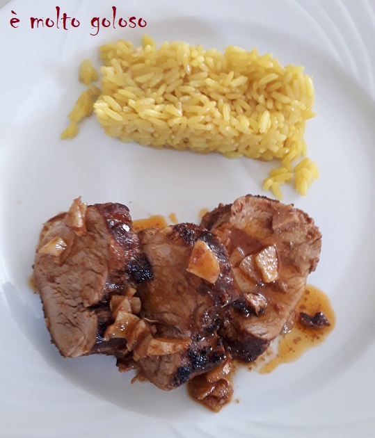 - Dresser sur assiettes chaudes : tranches de filet nappées de marinade et riz moulé.