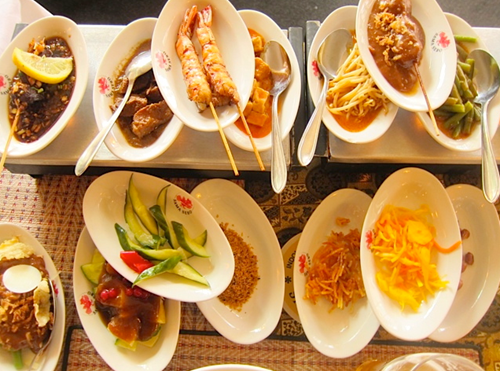 Il se compose de nombreux plats d’accompagnement (quarante n’est pas un nombre inhabituel) servis en petites portions, accompagnés de riz préparé de plusieurs manières. Les plats d’accompagnement populaires comprennent les rouleaux d’oeufs, les sambals, le satay, lepoisson, les fruits, les légumes, les cornichons et les noix. Dans la plupart des régions où il est desservi, comme les Pays-Bas, et d’autres zones de forte influence néerlandaise (comme certaines parties des Antilles, il est connu sous son nom néerlandais.