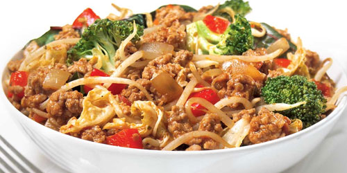 Le chop suey (en chinois : « mélange de morceaux ») est une préparation chinoise composée de protéine (du poulet mais aussi du bœuf, tofu, crevettes ou porc), le poulet est cuit rapidement avec des légumes tels que des germes de haricot, du chou, du céleri et lié à une sauce épaissie à l’amidon (farine). Il est généralement servi avec du riz, mais peut aussi prendre la forme d’un chow mein avec des nouilles cuites en friture.