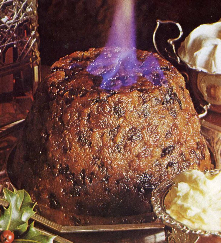Le Plum-pudding est un entremets sucré typique de la cuisine anglaise. Il est moulé en terrine, à base de graisse de rognon de veau ou de bœuf, de raisins secs, de pruneaux (plum), d’amandes, d’épices et de rhum. Il est cuit au bain-marie et servi flambé, accompagné d’une sauce au Cognac et au beurre.