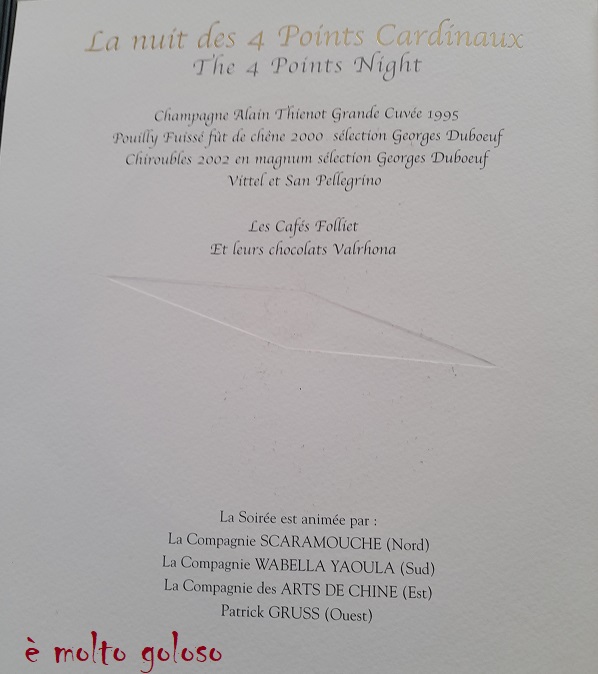 Menu du Dîner de Gala du Bocuse d’Or 2003 – La Nuit des 4 points Cardinaux.