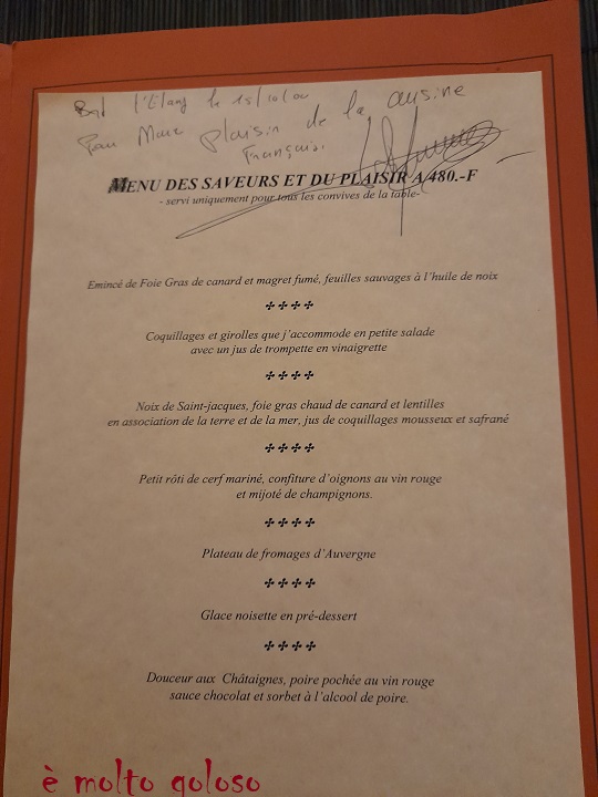 Carte du restaurant Le Château de Codignat à Lezoux Bord l’Etang (63) – Stéphane Dupuy MOF Cuisine 2004.